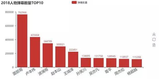 根據(jù)CSDN對(duì)2018、2019兩年彈幕數(shù)量TOP10人物的統(tǒng)計(jì),2019年開(kāi)始,吳亦凡的排名從第七名上升至第四名。蔡徐坤則超越了“楊超越”、“周杰倫”躋身至2019年新“TOP10”。